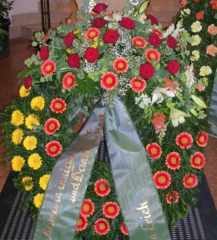 In unserer Galerie können Sie sich einen kleinen Auszug unserer Artikel ansehen. Gerne beraten wir Sie in einem persönlichen Gespräch zur Trauerfloristik und erstellen für Sie diese Trauerspenden ganz individuell nach Ihrem Geschmack. Unsere Angebote zu Blumenschmuck reichen von einer kleinen Aufmerksamkeit bis hin zu aufwendigen Arrangements an besonderen Gedenktagen. Uns ist es besonders wichtig, Ihre individuellen Wünsche zu berücksichtigen und einen würdevollen Gedenkkranz, ein Bukett oder einfach einen Strauß in stiller Trauer zum Niederlegen zu gestalten.