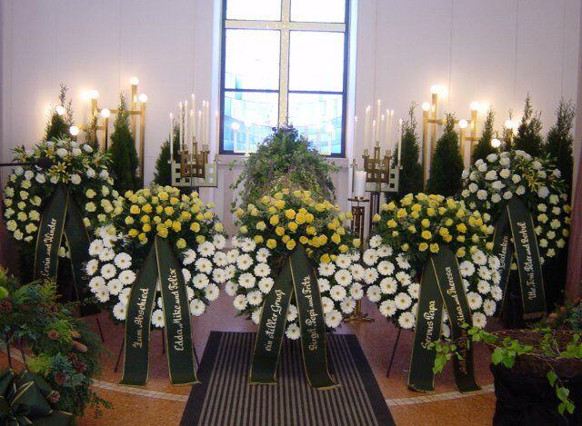 Gerne fertigen wir für Sie Sarggestecke und anderen Sargschmuck auch ganz individuell nach Ihren persönlichen Vorstellungen. Lassen Sie sich von der Friedhofsgärtnerei Ehrenberger in Wien zu den verschiedenen Möglichkeiten beraten! Die Zustellung des Sargschmucks in ganz Wien und den umliegenden Gemeinden gehört zu unserem Service, den wir Ihnen selbstverständlich anbieten.
